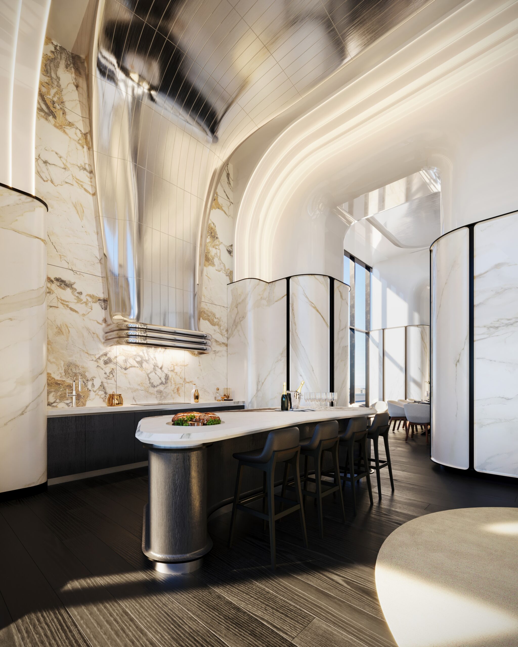 - Chef’s kitchen with private dining room
